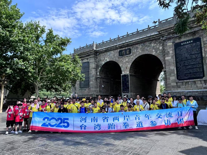 7月31日至8月7日,2025海峡两岸青少年跆拳道交流赛及文化参访活动在河南省成功举办。来自台湾高雄、新竹、苗栗等地区的180名跆拳道青少年运动员、教练员及相关体育协会负责人应邀参加。豫台青少年以拳脚作笔,以汗水为墨,共书一场跨越海峡的青春对话。比赛结束后,台湾青少年参访焦作、洛阳、开封、郑州等地,饱览河南秀美风光,领略中华武术魅力,探索中原厚重历史,追寻中华民族根脉,共筑两岸线海峡两岸青少年跆拳道交流赛在郑州启动。海峡两岸关系协会常务副会长龙明彪和新党副主席李胜峰出席。李胜峰在致辞中呼吁台湾青年放眼大陆更广阔的天地,把握大陆发展机遇,与中华民族伟大复兴同向同行。在两岸大联欢环节,河南青少年以舞龙舞狮作为暖场节目,巨龙盘卧组成“中”和“家”的形状,以此欢迎归家游子;在国标舞和街舞环节,展现了古老河南靓丽时尚的一面;在台湾青少年武术表演环节,太极拳表演尽显以柔克刚、以静制动的精髓,跆拳道表演则刚健有力、引发全场欢呼。来自台湾高雄、身兼参赛选手和两岸大联欢环节主持人的陈同学说,“感谢主办方的鼓励,让我有登台展示自己的机会,也结识了很多河南老师和朋友,期待接下来的比赛和行程。”