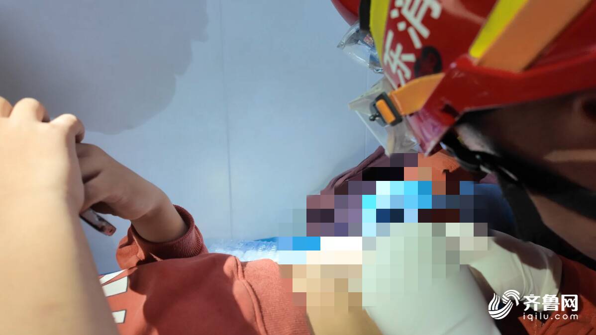4月13日,滨州市惠民县胡集镇卫生医院一男童被玩具小火车卡住,急需救援。滨州市消防救援支队指挥中心接到报警后,当即调派消防救援人员赶赴现场施行救援。