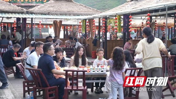 来到八面山,吃一顿烤全羊是必不可少的。到了饭点时刻,烤全羊店现已坐满了客人。店东向党也在快速给客人端上美食,让客人第一时刻吃上热腾腾的烤全羊。他说,最近每天要烤十来只羊,烤鸡一二十只,4点到8点的高峰期有时候连饭都没时刻吃。