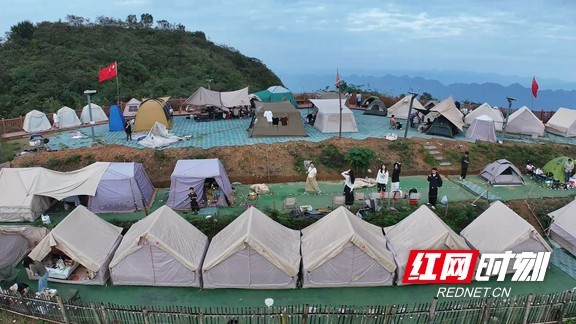 素有“南边空中草原”之称的八面山景区由于共同的地舆条件,也让它成为了看日出、云海的绝佳之处。在鸳鸯洞露营基地,游客们有的正在建立晚上寓居的帐子,有的正在预备晚餐的美食。敞开式的露营场所,有清晨云海翻腾,黄昏落日余晖,也有夜间星空灿烂,山水融合形成了一幅绚丽共同的画卷。